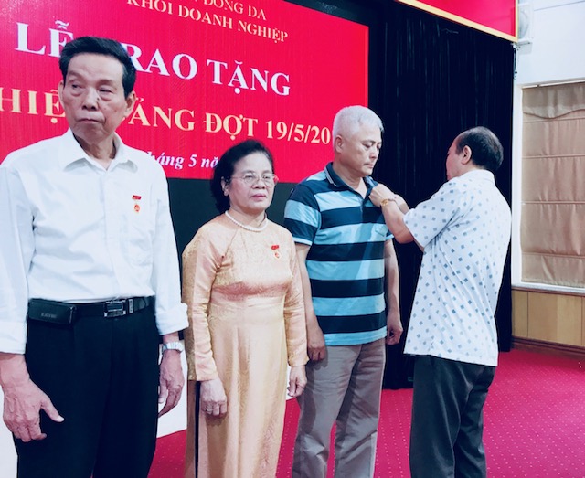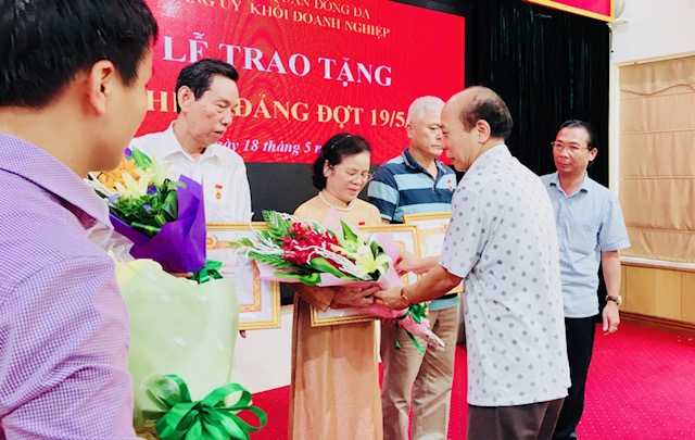 Thay mặt Đảng ủy Khối doanh nghiệp Đảng bộ quận đồng chí Nguyễn Trọng Hồng, Bí thư Đảng ủy Khối doanh nghiệp đã trao huy hiệu 55 năm tuổi Đảng và 30 năm tuổi Đảng cho ba Đảng viên đang sinh hoạt tại Đảng ủy Khối Doanh nghiệp quận Đống Đa.