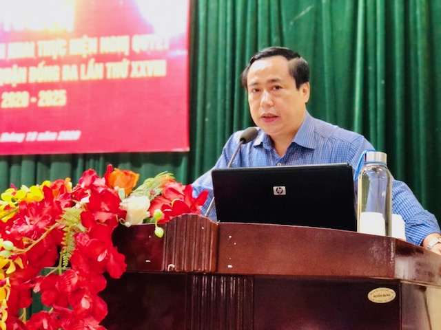Đồng chí Nguyến Minh Hùng, phó Trưởng ban Thường trực ban tuyên giáo Quận ủy, báo cáo viên truyền đạt nội dung Nghị quyết đại hội Đảng lần thứ 28 tại Hội nghị.
