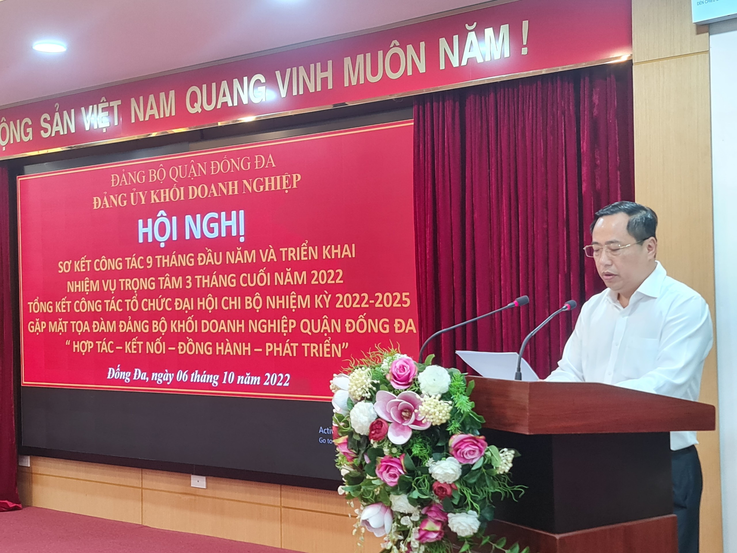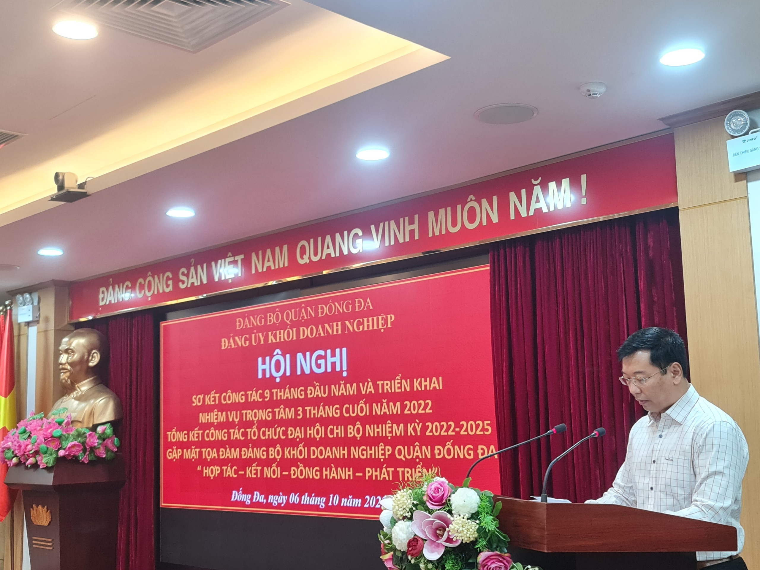 Báo cáo tại hội nghị, ông Nguyễn Văn Quang, Phó Bí thư, Chủ nhiệm ủy ban kiểm tra Đảng bộ Khối doanh nghiệp quận Đống Đa đã tóm tắt tình hình công tác của Đảng bộ Khối trong 9 tháng đầu năm, bên cạnh những mặt thuận lợi thì Đảng bộ Khối cũng gặp nhiều khó khăn. Tình hình trong nước và thế giới có những diễn biến mới với áp lực lạm phát, giá nguyên vật liệu, nhất là biển động của giá xăng dầu, ảnh hưởng lớn tới việc triển khai thực hiện các chỉ tiêu, nhiệm vụ chính trị của Quận, của các doanh nghiệp, của Đảng bộ Khối.