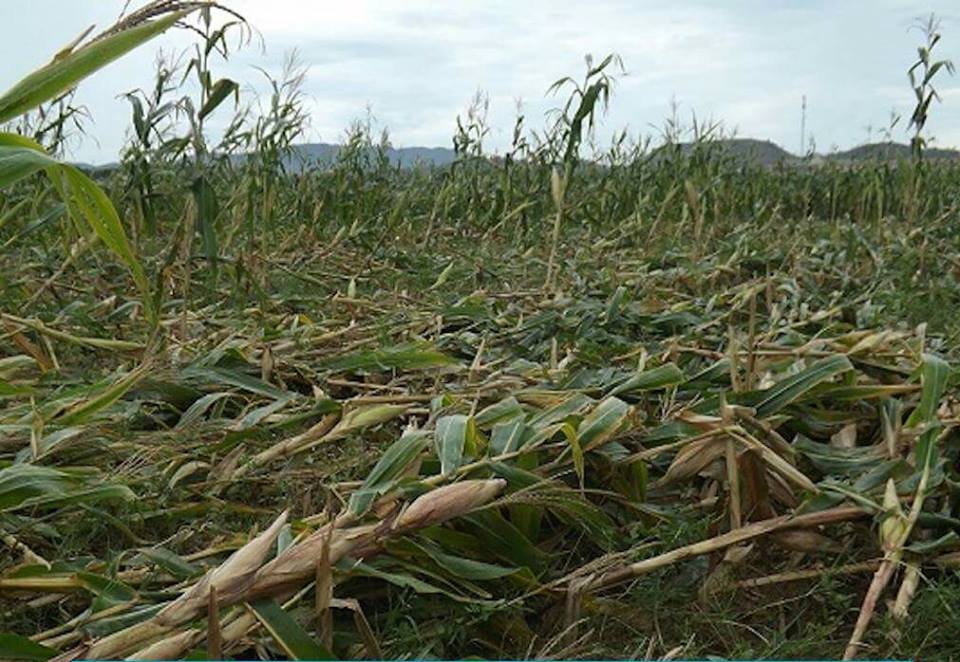 | Diện tích ngô chưa kịp thu hoạch bị cơn lốc quật gãy