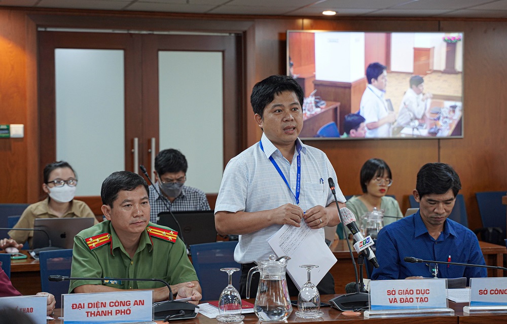 Ông Hồ Tấn Minh – Chánh Văn phòng Sở GD&ĐT Thành phố phát biểu tại họp báo.