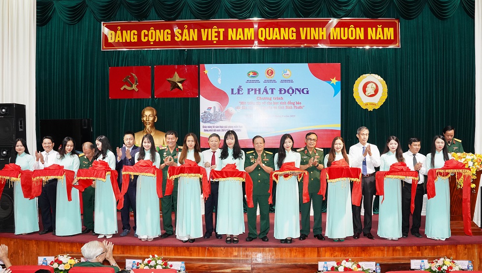 Ban tổ chức cắt băng phát động chương trình “Một triệu tập vở cho học sinh các dân tộc Tây Nguyên và tỉnh Bình Phước”.