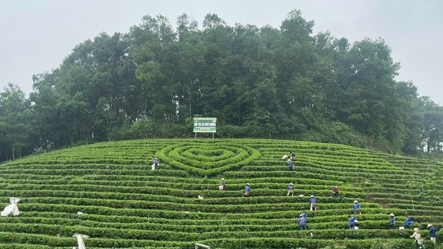 Thực hiện tiêu chí về tổ chức sản xuất trong xây dựng Nông thôn mới, HTX Tuyết Hương đã phát huy hiệu quả vai trò dẫn dắt kinh tế hộ gia đình thông qua mô hình liên kết chuỗi giá trị. Không chỉ đảm bảo thu nhập cho các thành viên chính thức, HTX còn ký kết hợp đồng bao tiêu sản phẩm đầu ra với mức giá ổn định cho hàng chục hộ dân liên kết trong vùng nguyên liệu tại xã Hóa Trung và các vùng lân cận. Việc cam kết thu mua búp chè tươi với giá cao hơn thị trường từ 10 - 15% của HTX đã giúp người trồng chè yên tâm canh tác, không còn lo cảnh "được mùa mất giá", từ đó tạo động lực để các hộ nghèo, cận nghèo mạnh dạn đầu tư sản xuất, vươn lên thoát nghèo bền vững.