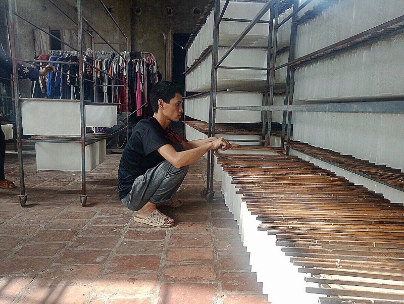 Bằng nghị lực của chính bản thân, bác đã vươn lên quyết tâm mở xưởng sản xuất bánh đa nem cho riêng mình. Mới đầu, kinh phí hạn hẹp, nguồn lao động ít nên bác chỉ dám làm ăn nhỏ. Sản phẩm làm ra cũng phải đi giao tận nơi. Khi nguồn vốn được cải thiện, bác cũng mạnh dạn thuê thêm nhân công, mở rộng quy mô làm ăn. Bác chia sẻ: “Lúc trước, khi cở sở mới đi vào hoạt động, hàng ngày bác phải trở bánh đa đến từng nơi từng nhà để bán. Chứ không nhàn như bây giờ, chỉ cần ngồi làm ở nhà, sẽ có khách tự đến lấy”.