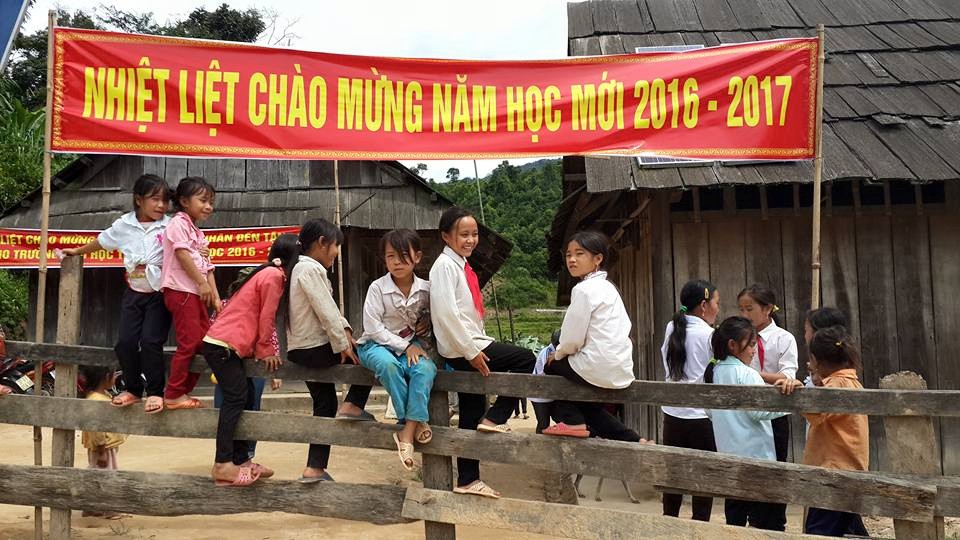| Các em học sinh phấn khởi chào đón năm học mới |