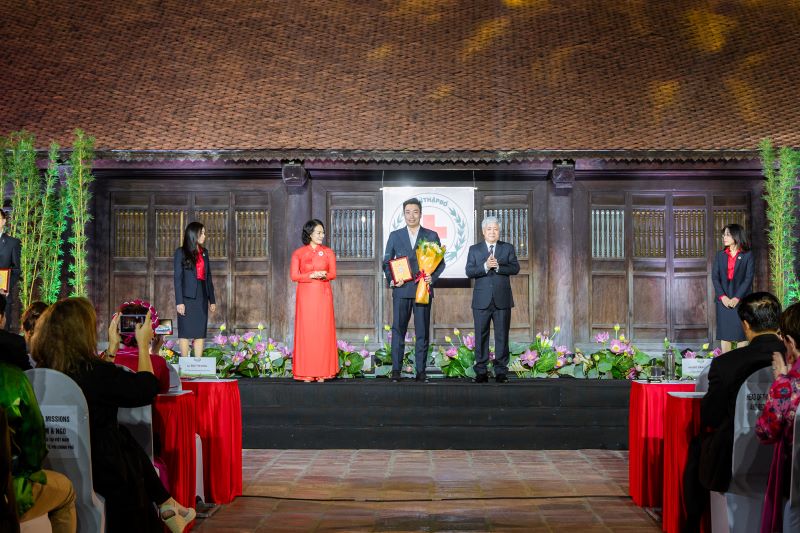 Ông Phạm Sơn Tùng, Trưởng ban điều hành Quỹ nhận hoa tri ân từ đại diện Trung ương Hội Chữ thập đỏ Việt Nam