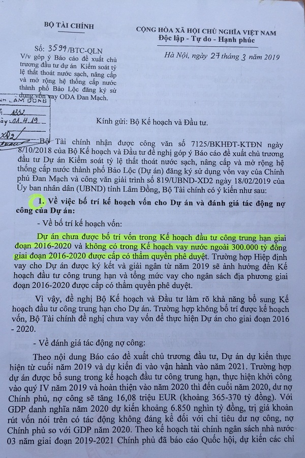 Sau khi các bài viết liên quan đến Báo cáo đề xuất chủ trương đầu tư sử dụng vốn ODA của Đan Mạch trong dự án Kiểm soát tỷ lệ thất thoát nước sạch, nâng cấp và mở rộng hệ thống cấp nước TP.Bảo Lộc đăng tải trên Hoanhap.vn, chúng tôi đã nhận được ý kiến tâm huyết, trách nhiệm của một số chuyên gia ngành nước, có nội dung: Vì lợi ích của cộng đồng dân cư, vì sự phát triển của TP.Bảo Lộc, đề nghị lãnh đạo địa phương xem xét, đánh giá một cách cẩn trọng trước khi phê duyệt dự án từ nguồn nước hồ Lộc, Thắng, huyện Bảo Lâm. Hoanhap.vn tiếp tục thông tin về vụ việc.