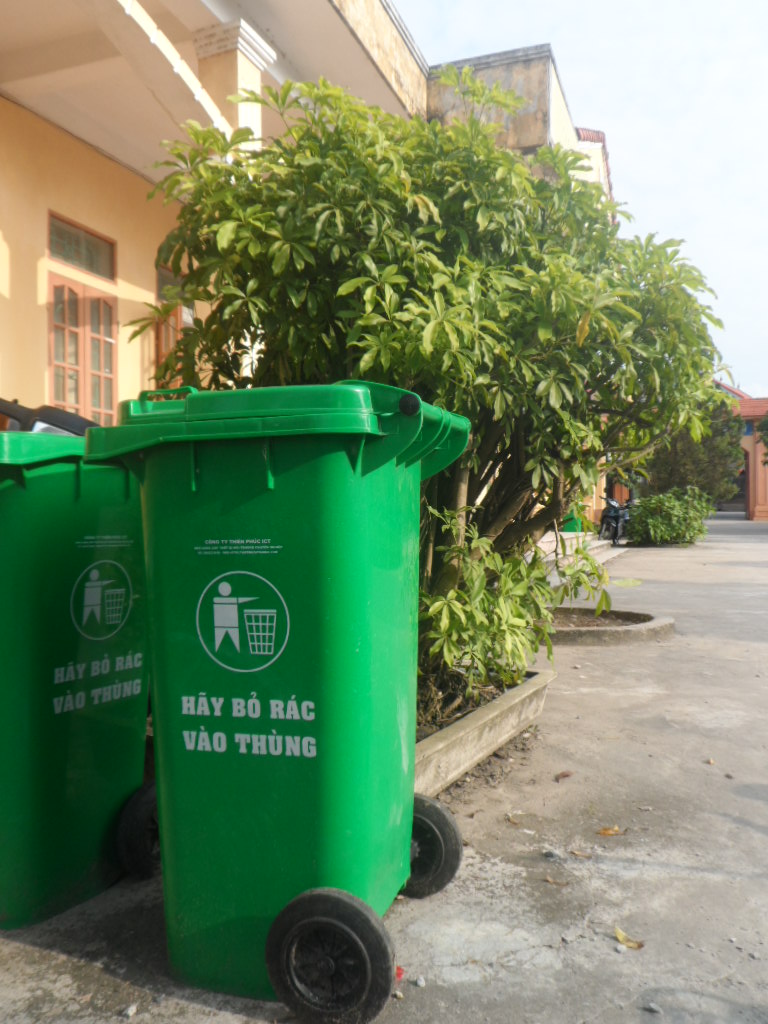 | Toàn huyện Trực Ninh đã có 828 thùng rác cơ động đặt tại tất cả các trường học. |