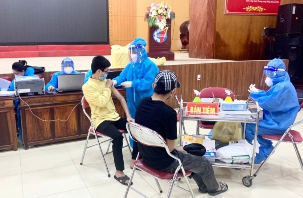 Phối hợp với cơ quan y tế tiêm Vacxin Covid-19 cho các em HSSV.