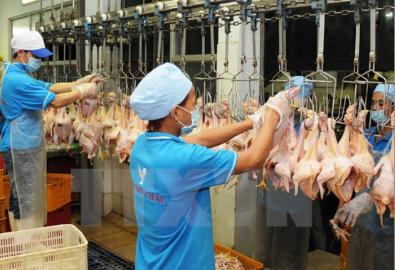 | Dây chuyền giết mổ gà đảm bảo an toàn vệ sinh thực phẩm tại thành phố Hồ Chí Minh. (Ảnh: An Hiếu/TTXVN) |