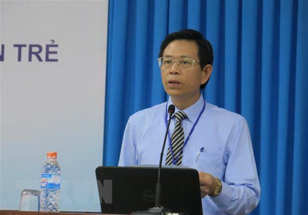 | Giáo sư-tiến sỹ Tạ Ngọc Đôn, Vụ trưởng Vụ Khoa học công nghệ và môi trường, Bộ Giáo dục và Đào tạo phát biểu tại hội thảo. (Ảnh: Phan Thị Sáu/TTXVN) |