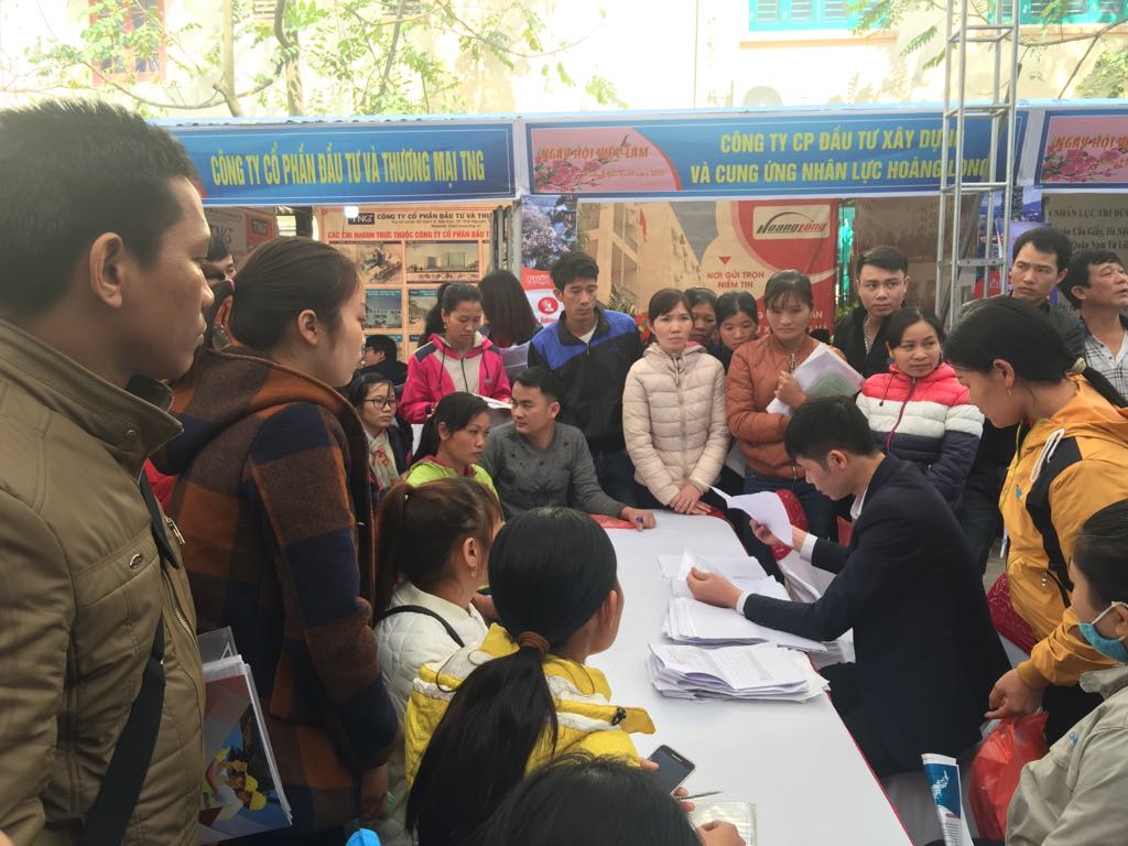 | Người lao động làm thủ tục hưởng BHTN tại Hội chợ việc làm tỉnh Hải Dương |