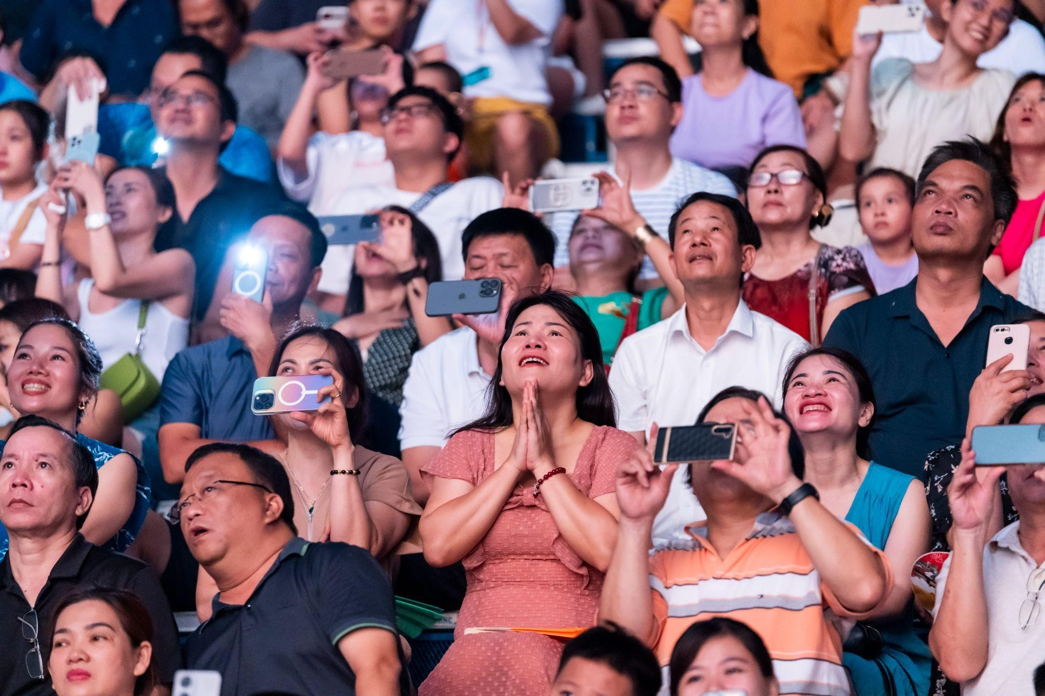 Tiếng reo hò và vỗ tay không ngớt, tạo nên một bầu không khí sôi động và phấn khích. Hàng nghìn khán giả bị cuốn hút bởi những màn trình diễn pháo hoa tuyệt vời, cảm nhận được sự kỳ diệu của thiên nhiên và con người qua từng đợt pháo hoa và giai điệu.