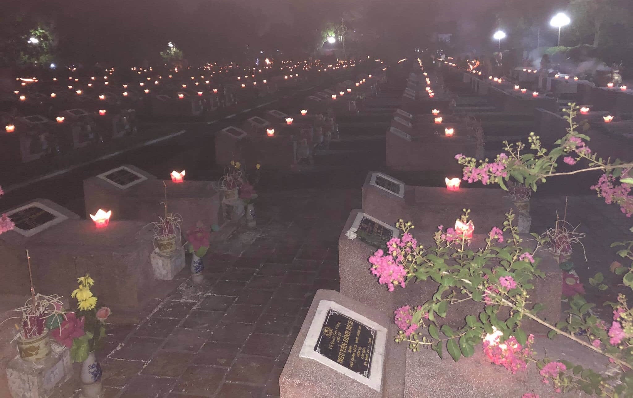 Những ngọn nến lung linh tri ân công lao của các anh tại Nghĩa trang Liệt sĩ thành phố Vinh