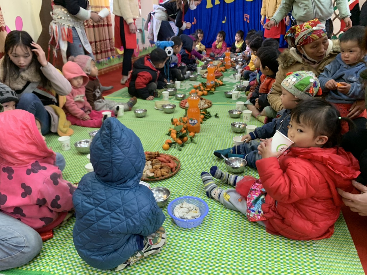 Các em học sinh ăn tất niên trong niềm háo hức.