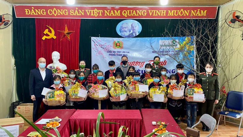 Phòng Tham mưu và Phòng Cảnh sát phòng, chống tội phạm về môi trường Công an tỉnh Lào Cai phối hợp với Vietcombank Lào Cai tổ chức Chương trình Xuân yêu thương năm 2022 tại trường Mầm non Nậm Pung, huyện Bát Xát, tỉnh Lào Cai.