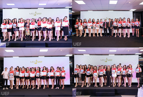 Các thí sinh được trao giấy chứng nhận của Miss UEF 2022.