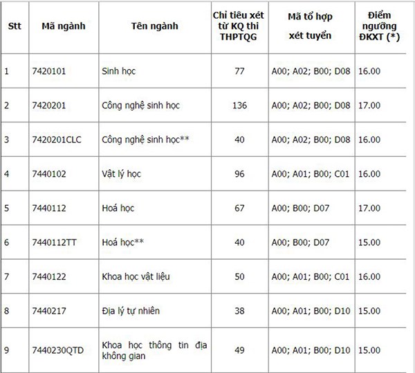 ĐH Quốc gia Hà Nội vừa công bố mức điểm sàn nhận hồ sơ xét tuyển ĐH chính quy năm 2018 của các khoa, trường thành viên trực thuộc.