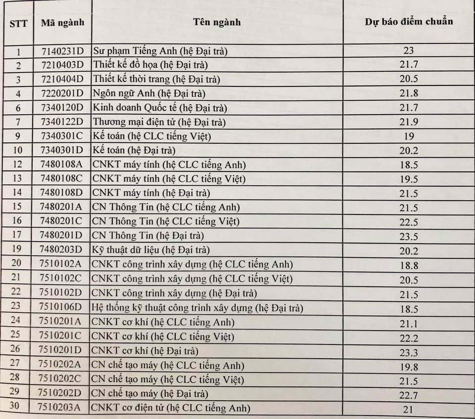 | Điểm chuẩn dự kiến của Đại học Bách Khoa Hà Nội năm 2019. |