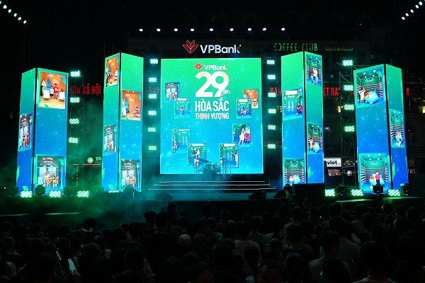Với chủ đề “29 năm – Hòa sắc Thịnh vượng”, VPBank đã chiêu đãi khán giả và du khách một bữa tiệc nghệ thuật ấn tượng và sôi động, trong đó điểm nhấn là minishow ca nhạc với sự góp mặt của các nghệ sĩ hot của giới trẻ hiện nay như Suni Hạ Linh, Ngọt, Chillies…. Chương trình thu hút hơn 12.000 khán giả check-in sự kiện và gần 42 triệu lượt tương tác trên các nền tảng số.