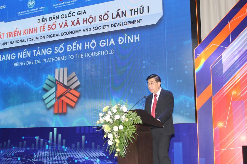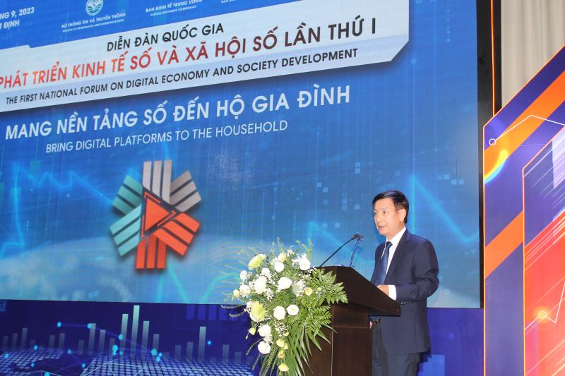 Ông Nguyễn Huy Dũng, Thứ trưởng Bộ TT&TT thay mặt Ban Tổ chức công bố Chương trình hành động của Diễn đàn quốc gia phát triển kinh tế số và xã hội số lần thứ nhất - Ảnh: Hồ Thanh
