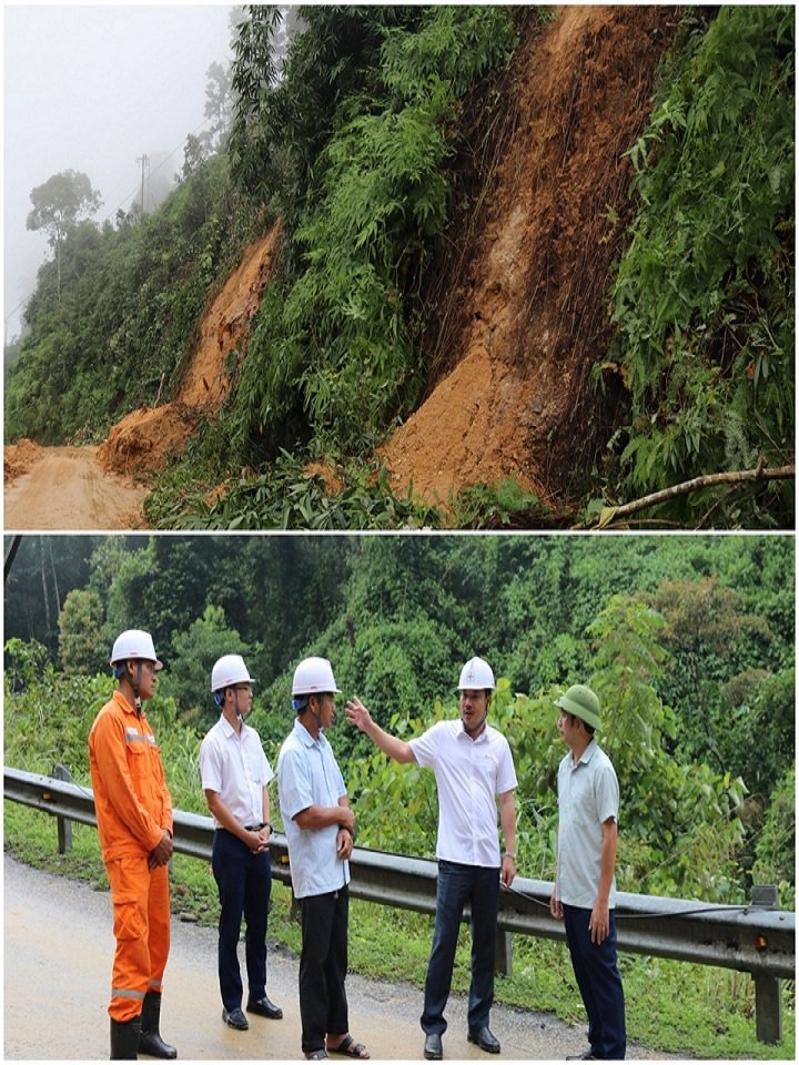 Mưa lũ gây sạt lở đường giao thông bị chia cắt, công nhân Điện lực rất khó khăn trong việc tiếp cận hiện trường xử lý sự cố