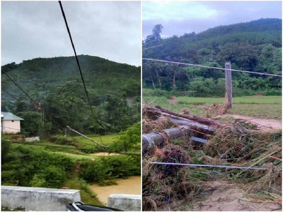 Cột điện gãy đỗ do ảnh hưởng của giông lốc xảy ra vào ngày 27/9/2023 trên địa bàn huyện Quỳ Châu, Quế Phong