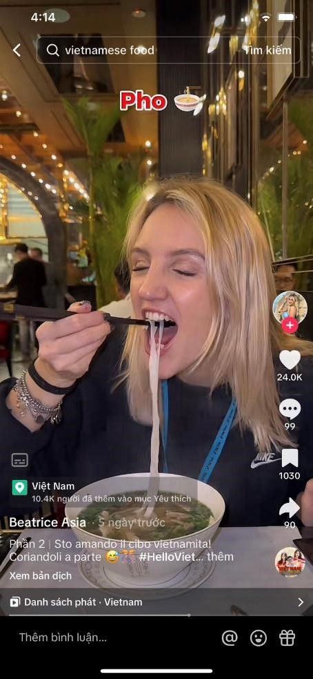 Trải nghiệm ẩm thực tạo nên ấn tượng sâu đậm khó quên trong hành trình khám phá vẻ đẹp thiên nhiên, văn hóa Việt Nam của đoàn TikTok Creators quốc tế. Mới đây, Tạp chí ẩm thực Taste Atlas đã bình chọn Việt Nam đứng thứ 22 trong danh sách 100 nền ẩm thực ngon nhất thế giới. Và đương nhiên, phở - món ăn “quốc hồn quốc túy” của Việt Nam là điều mà bất kỳ khách quốc tế nào cũng muốn thử.