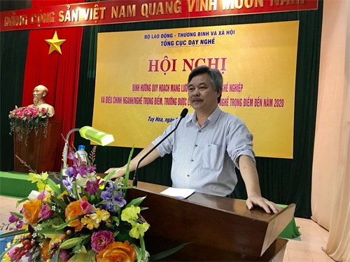 | TS. Nguyễn Hồng Minh, Tổng Cục trưởng Tổng cục Dạy nghề phát biểu tại Hội nghị |