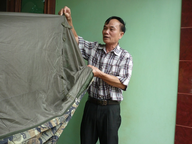 Thương binh Đinh Quốc Tự bên chiếc võng dù - kỉ vật thời chiến tranh được ông lưu giữ cẩn thận