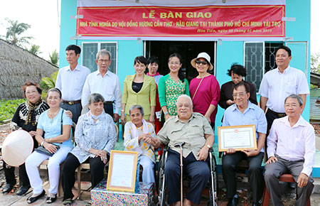 | Bàn giao nhà tình nghĩa cho Bà mẹ Việt Nam anh hùng Huỳnh Thị Hường, 92 tuổi, ở ấp Thạnh An, xã Hỏa Tiến, thành phố Vị Thanh, Hậu Giang. Ảnh minh họa: baohaugiang.com.vn |