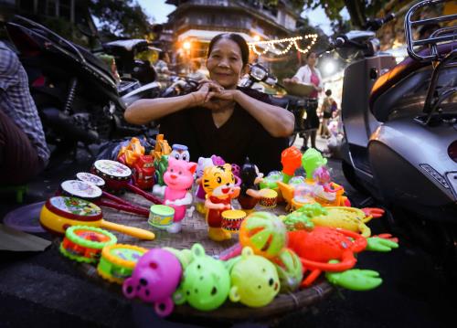Rất nhiều đồ chơi có nguồn gốc từ Trung Quốc được bày bán nhan nhản tại các cửa hàng, hay cả trên mẹt của những người bán rong đồ chơi ở phố cổ trong những ngày này. Ảnh: Trọng Đạt - TTXVN
