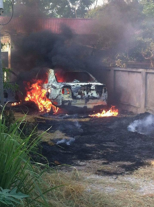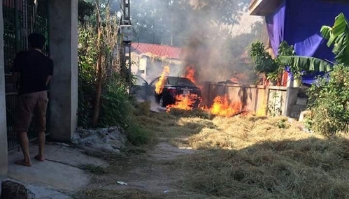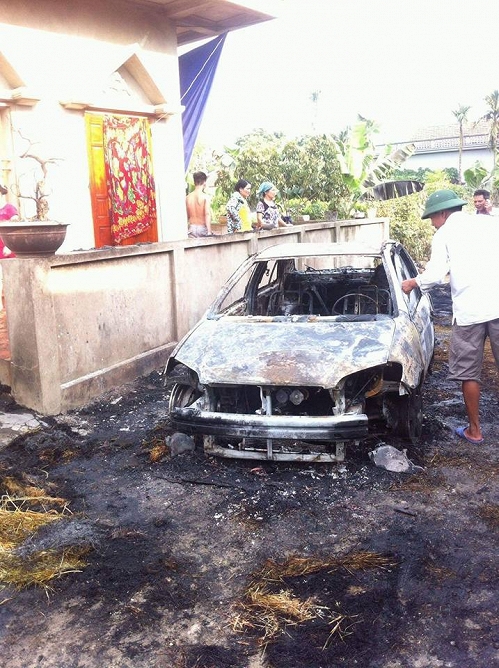 Lát sau, người dân thấy khói bốc lên từ phía dưới xe, trong tích lắc, lửa bùng lên dữ dội. Thấy vậy, mọi người hô hoán nhau dập lửa nhưng do thời tiết khô nóng cộng với ở dưới gầm xe rất nhiều rơm khô nên người dân không dập được lửa.