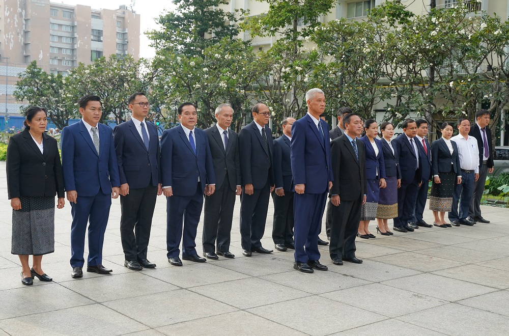Đoàn do ông Anouphap Tounalom – Bí thư Trung ương Đảng, Bí thư Thành ủy, Chủ tịch HĐND Thủ đô Viêng Chăn dẫn đầu. Phó Chủ tịch HĐND TP Hồ Chí Minh Phạm Thành Kiên thay mặt lãnh đạo Thành phố, đón tiếp và cùng dâng hoa với đoàn.