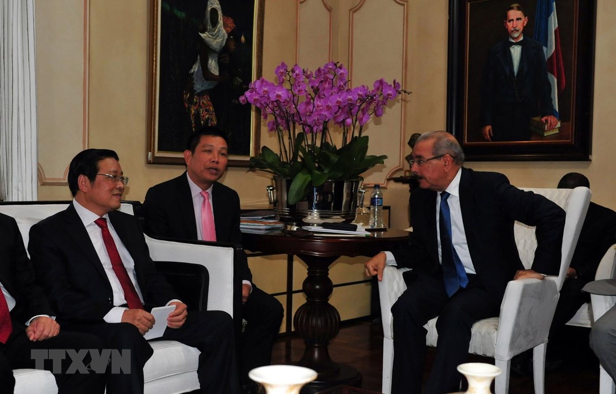 | Tổng thống Cộng hòa Dominicana Danilo Medina tiếp ông Phan Đình Trạc. (Ảnh: Vũ Hà/TTXVN) |