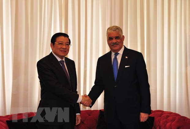 | Ông Phan Đình Trạc gặp Bộ trưởng Ngoại giao Cộng hòa Dominicana Miguel Vargas. (Ảnh: Vũ Hà/TTXVN) |