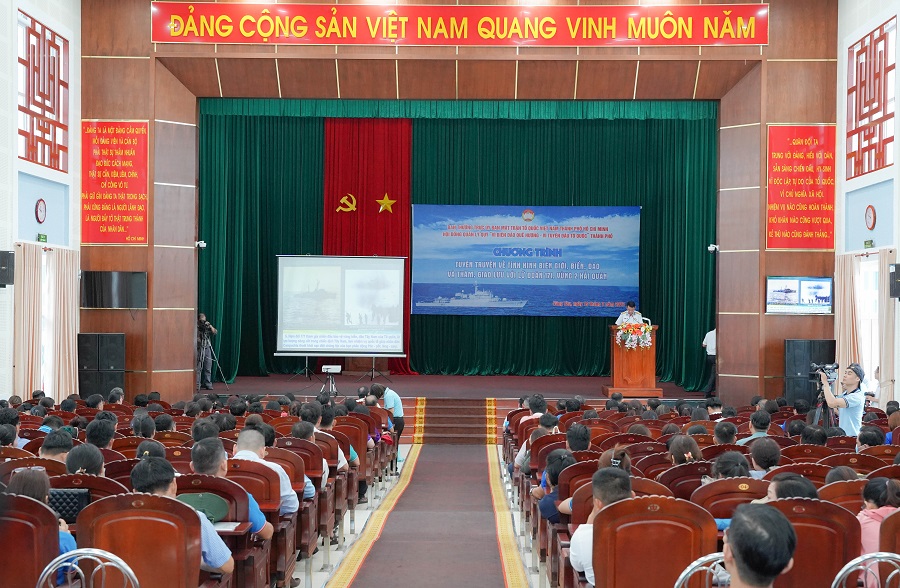 Phát biểu tại chương trình, ông Nguyễn Thành Trung – Phó Chủ tịch Thường trực UBMTTQVN TP Hồ Chí Minh nhìn nhận, trong thời gian qua đơn vị đã tổ chức tốt hoạt động tuyên truyền về chủ quyền biển đảo, cho cán bộ, nhân viên và các tầng lớp nhân dân bằng nhiều hình thức. Mặt trận Tổ quốc TP Hồ Chí Minh đã phối hợp, vận động các tổ chức, đơn vị, doanh nghiệp, mạnh thường quân và đông đảo nhân dân tham gia đóng góp, xây dựng Quỹ “Vì Biển đảo quê hương – Vì tuyến đầu Tổ quốc”, hưởng ứng Cuộc vận động “Nghĩa tình biên giới, hải đảo”; tổ chức cuộc thi tìm hiểu về biển đảo Việt Nam; phát động chương trình “Vì Trường Sa xanh”… Đồng thời, thường xuyên chăm lo, hỗ trợ, nâng cao đời sống vật chất, tinh thần, động viên cán bộ, chiến sĩ và nhân dân yên tâm sinh sống, công tác, vượt qua khó khăn, vươn lên trong sản xuất và chiến đấu, giữ vững chủ quyền biển, đảo. Qua đó, góp phần nâng cao nhận thức, bồi đắp thêm lòng yêu nước, hướng về biển, đảo quê hương của nhân dân Thành phố.