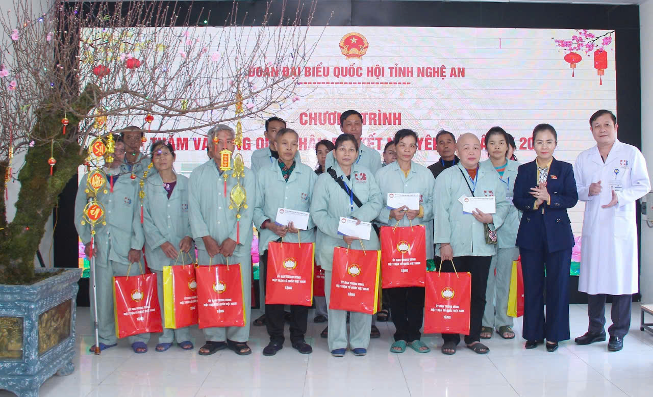Tại Bệnh viện Ung bướu Nghệ An, các đại biểu Quốc hội tỉnh Nghệ An đã trao 200 suất quà cho 200 bệnh nhân nghèo, có hoàn cảnh đặc biệt khó khăn đang điều trị tại bệnh viện; mỗi suất quà 1 triệu đồng tiền mặt và hiện vật trị giá 300 nghìn đồng.