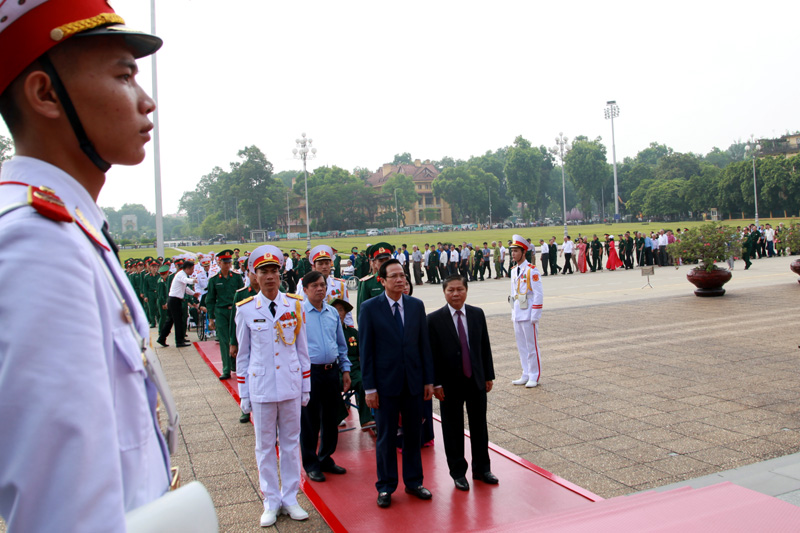 Sau lễ tưởng niệm các anh hùng, liệt sĩ, đoàn đại biểu đã đặt vòng hoa, vào Lăng viếng Chủ tịch Hồ Chí Minh.