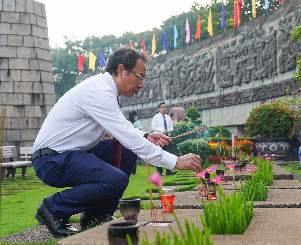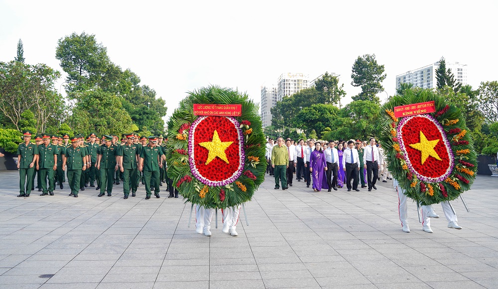 Tại Nghĩa trang Liệt sĩ TP Hồ Chí Minh (Đồi không tên, TP Thủ Đức), ông Nguyễn Văn Nên – Bí thư Thành ủy TP Hồ Chí Minh dẫn đầu đoàn đại biểu dâng hoa, dâng hương, tưởng nhớ hương linh của hơn 14.000 anh hùng liệt sĩ yên nghỉ.