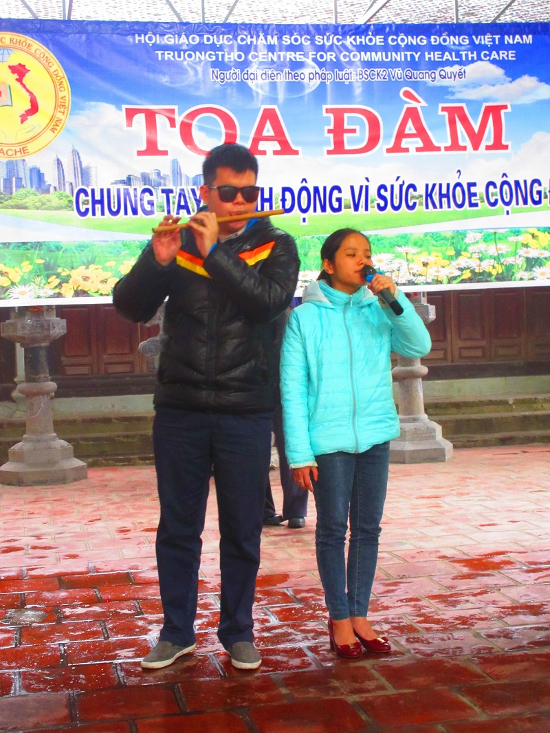 Tiết mục văn nghệ do các cháu khiếm thị trong đội văn nghệ “Mái ấm tình thương” hát mừng hội nghị