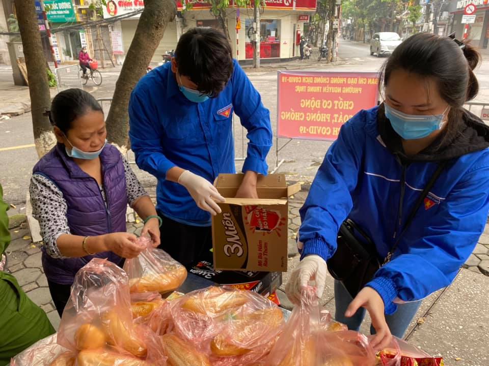 Đoàn Thanh niên phường và các mạnh thường quân tổ chức phát 100 suất quà mỗi ngày gồm: mỳ gói, bánh mì và sữa đến hết ngày 15/4/2020.