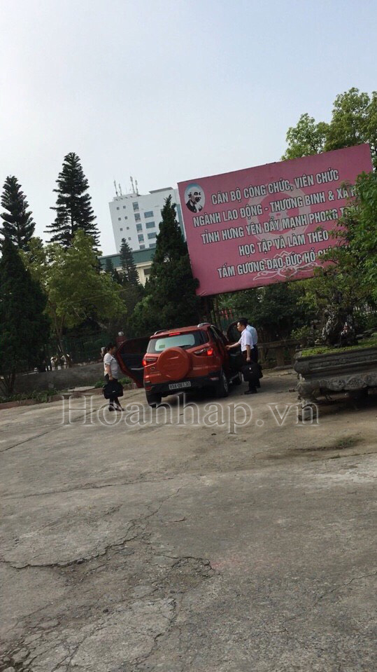 Cán bộ Đoàn Thanh tra xuống xe tại cổng Sở LĐTBXH