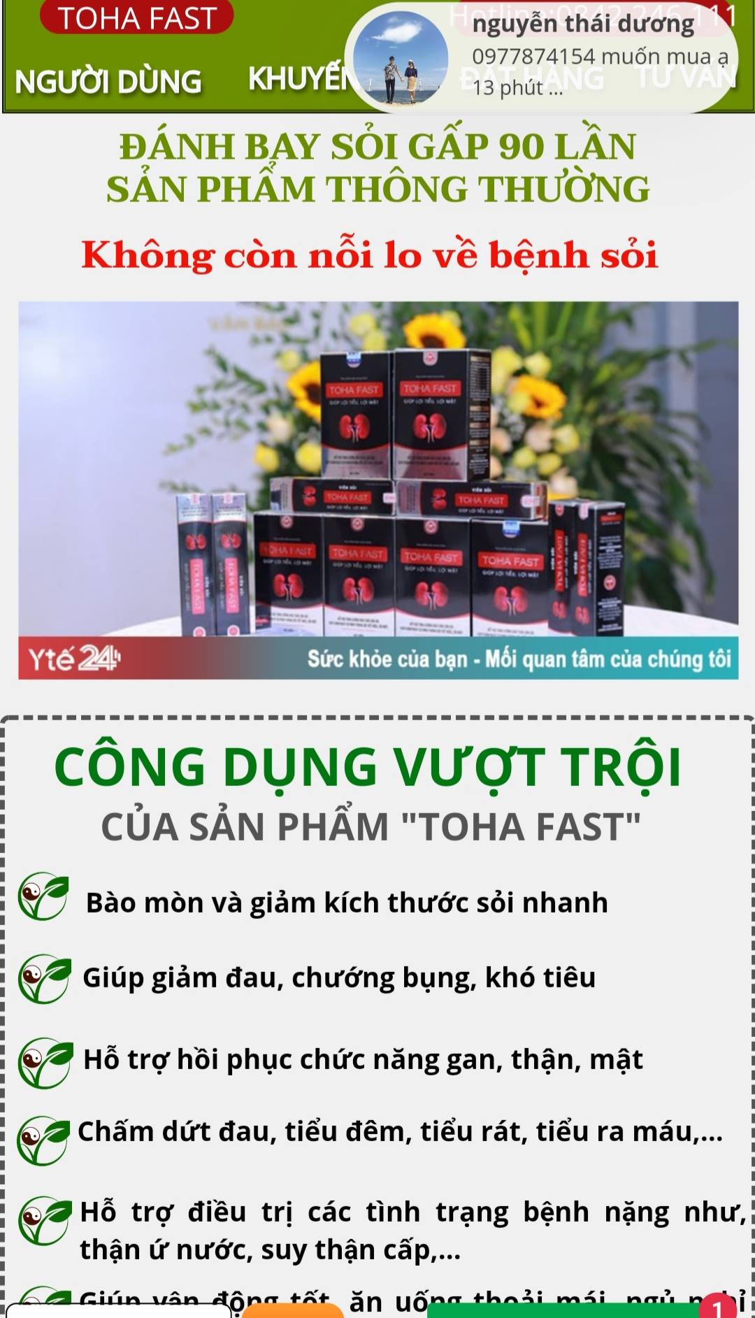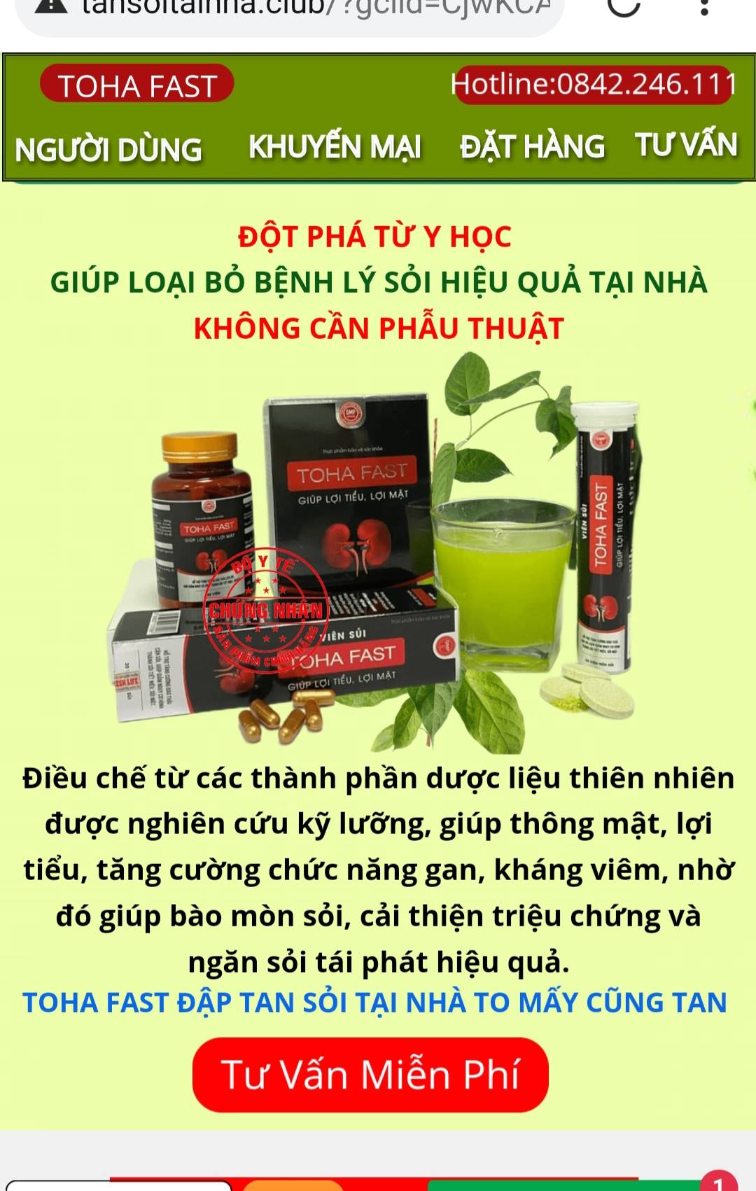 Theo thông tin ghi trên bao bì cũng như công bố của Bộ Y tế, sản phẩm TOHAFAST chỉ là thực phẩm bảo vệ sức khỏe, được cấp phép quảng cáo có tác dụng lợi tiểu, lợi mật, hỗ trợ đào thải sỏi… Đây hoàn toàn không phải là thuốc và không có tác dụng chữa bệnh, nhưng qua quảng cáo và qua mồm của các vị “thần y” tuổi đôi mươi, nó đã trở thành thứ thần dược chữa bệnh quá hiệu quả.