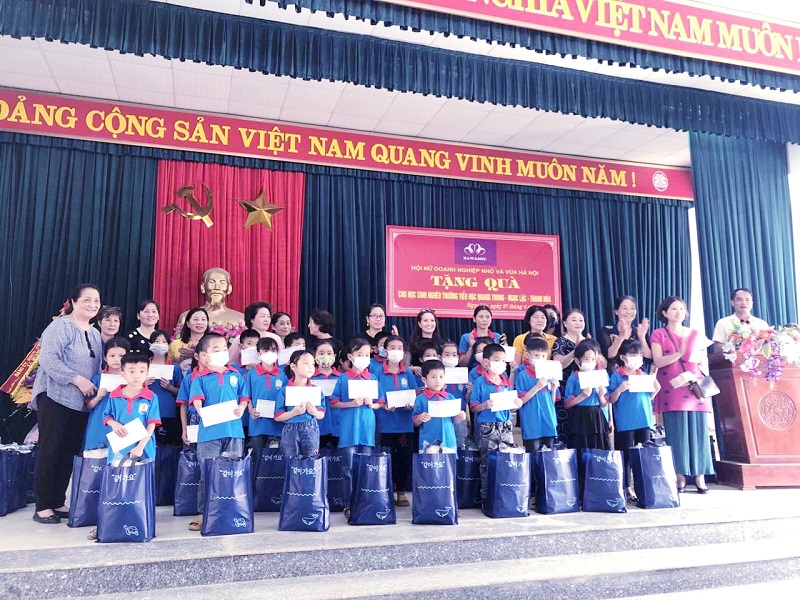 Doanh nhân Phương Thảo cùng Hội Nữ doanh nghiệp nhỏ và vừa Hà Nội tặng quà cho học sinh nghèo trường tiểu học Quang Trung huyện Ngọc Lặc, tỉnh Thanh Hoá.