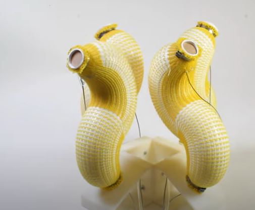 PneuAct dệt những mảnh nhỏ bằng sợi dẫn điện, trước khi được cố định vào ống silicone cao su để hoàn thiện bộ truyền động.