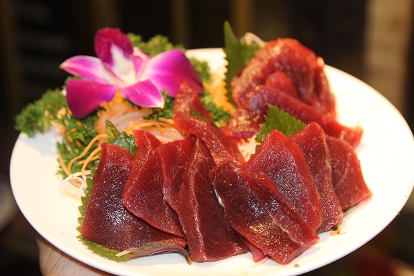 Những miếng cá ngừ tươi ngon được nằm gọn trên đĩa sẵn sàng phục vụ thực khách tham dự sự kiện.