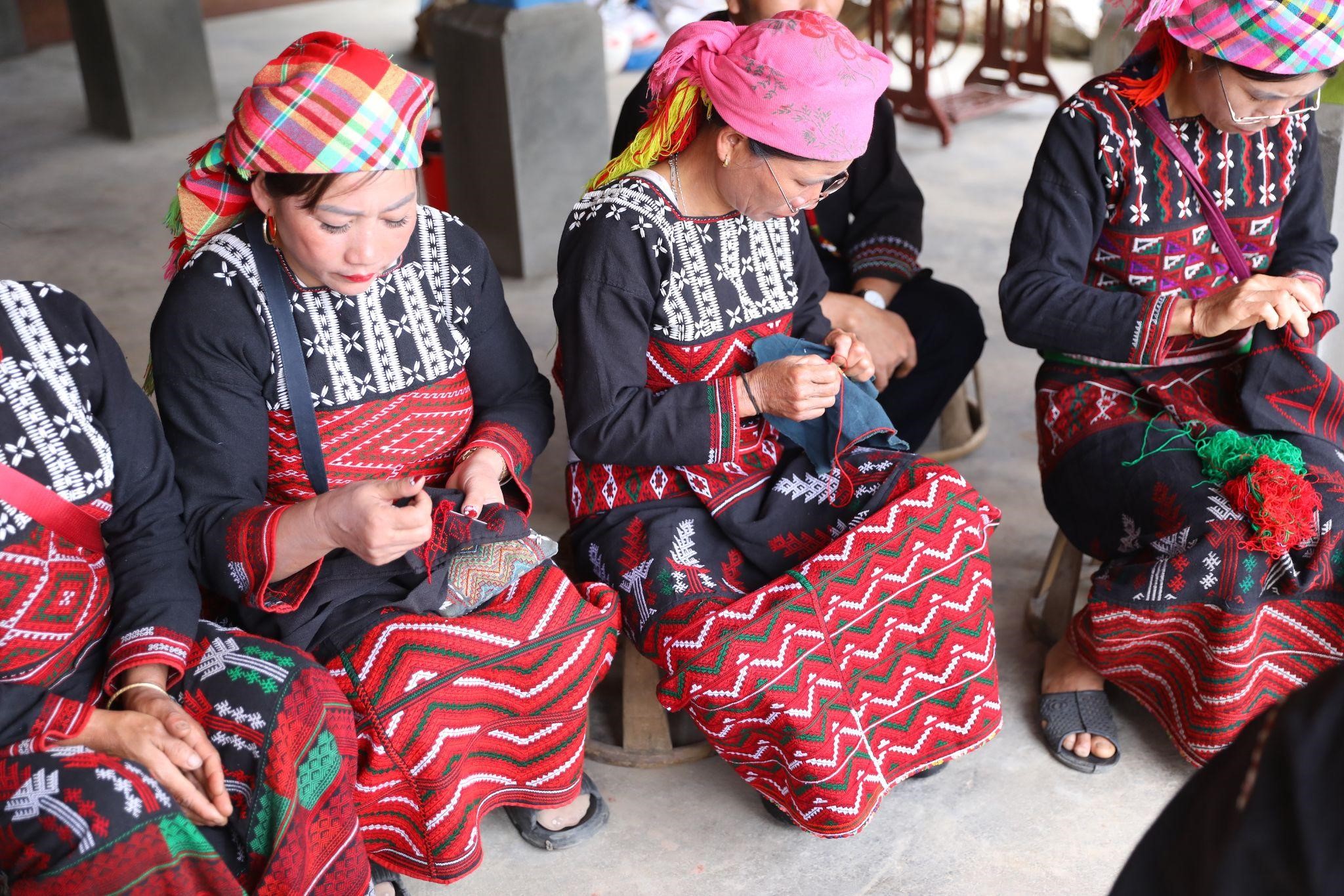 Nhắc đến Tây Bắc, ai cũng sẽ nghĩ ngay đến những sắc màu thổ cẩm trên trang phục truyền thống người dân nơi đây. Song không phải ai cũng từng được tận mắt thấy, hoặc được tìm hiểu cặn kẽ về quá trình làm nên những tấm áo, chiếc váy đẹp mắt của đồng bào. Ví như, một bộ trang phục cô dâu người Dao phải mất nhiều năm để thêu tay, người Xa Phó để làm nên chiếc váy áo được ví như “đỉnh cao nghệ thuật” thì phải tự tay thu hoạch hạt cườm tươi, dệt vải, rồi thêu lên áo váy vô cùng cầu kỳ. Ở đây, du khách sẽ trực tiếp được người dân địa phương hướng dẫn từng đường kim mũi chỉ, tự tay làm những sản phẩm lưu niệm độc đáo. Ngoài ra, rất nhiều những ngành nghề như nhuộm vải, làm trống… sẽ được tái hiện sống động và chân thực.