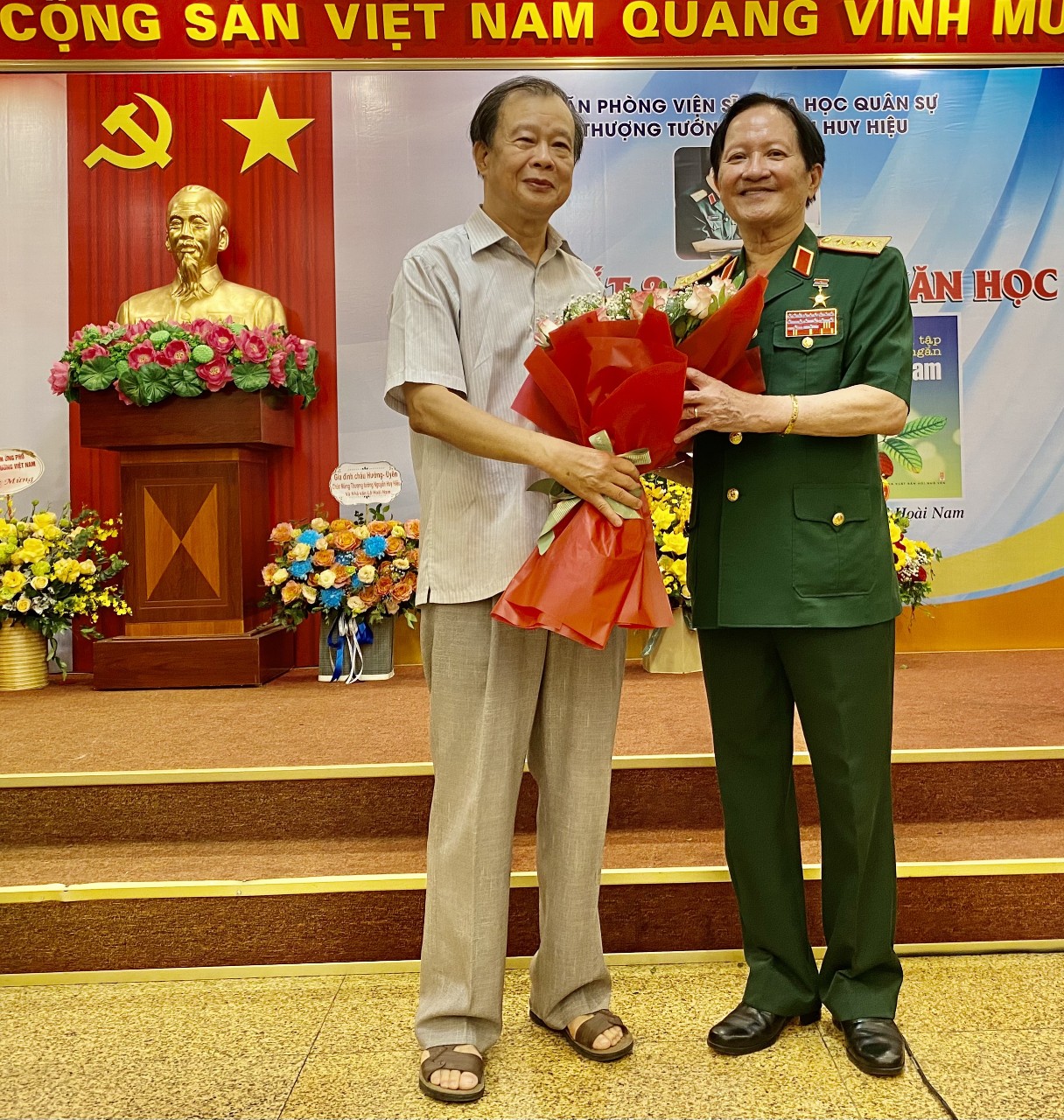 Tác giả Đỗ Văn Phú và Thượng tướng Nguyễn Huy Hiệu.
