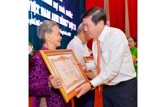 Chủ tịch UBND TPHCM Nguyễn Thành Phong trao danh hiệu “Bà Mẹ Việt Nam anh hùng” cho các gia đình